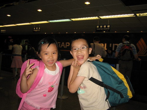 爸爸正向新航櫃臺辦理手續.